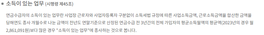 즉, 이 금액을 초과하게 되면 국민연금 수령액이 감액됩니다. 월평균 소득금액에는 사업소득, 근로소득을 합산한 금액을 1월 ~ 12월로 나눠 계산합니다.