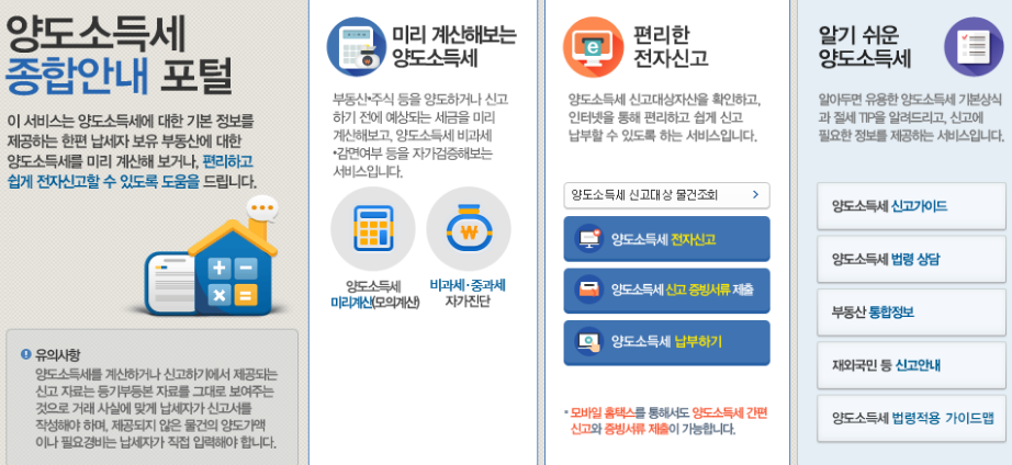 양도할 계획이라면 홈택스 양도소득세 자동계산을 활용해 보시기 바랍니다.