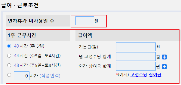 연차수당 계산기 홈페이지에서 연차휴가 미사용 일수를 입력하고 1주 근무시간, 급여액 등 해당하는 항목을 입력한 후 계산하기를 클릭하면 내가 받을 수 있는 연차수당이 계산됩니다.