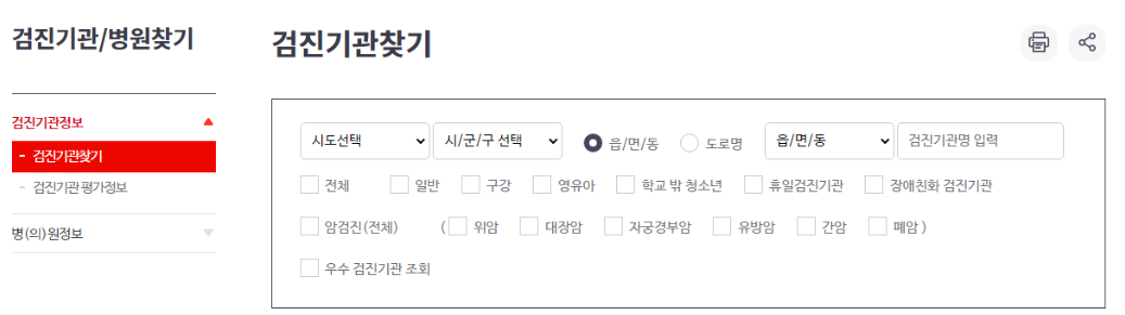 집 근처 가까운 병원에서 건강검진을 받고 싶다면 검진기관 조회를 통해서 바로 예약을 할 수 있습니다.