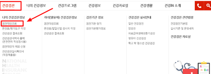 건강인 홈페이지에서 검진대상자 조회 방법으로는 홈페이지 상단에 '건강검진' 메뉴를 클릭한 후 '검진 대상자 조회' 메뉴를 선택합니다.
