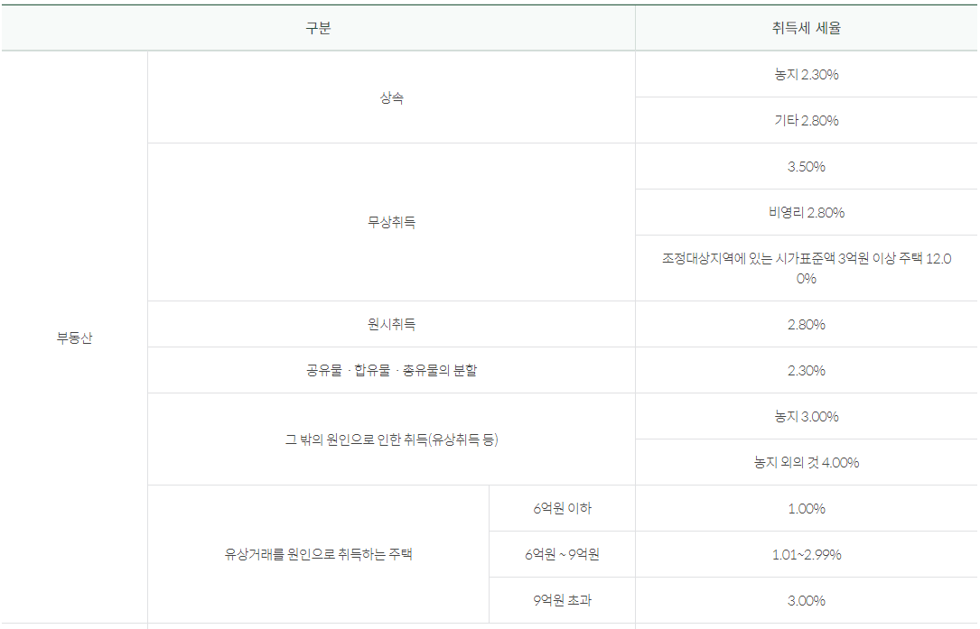 취득세율 및 취득세율표에 대하여 알려드리겠습니다. 부동산을 구매 시 가장 중요한 세금 중 하나가 바로 취득세입니다. 부동산을 매수할 계획이 있다면 미리 취득세율을 알고 그에 맞게 준비