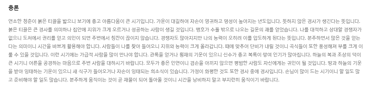 현재 2024년 신년운세, 토정비결, 사주풀이가 업데이트되었기 때문에 2024 운세를 볼 수 있는데요. 간혹 무료 운세이지만 너무 소름 돕게 잘 맞는 경우도 있어 놀라기도 합니다.