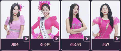 김정은, 뮤지컬 배우 김청아,가수 나영, 노규리, 노수영, 트로트의 민족, 탑골 랩소디 참가자 가수, 배우로 활동하고 있는 라라 베니또, 리나, 명재이, 미스김, 민정윤이 참가합니다.