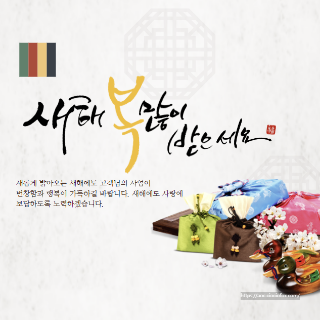 - 즐거운 새해를 맞아 감사인사를 드립니다. 지난해 보여주신 관심과 성원에 깊이 감사드립니다. 언제나 평안하시길 기원하며 새해에는 하는 일마다 행운이 깃드시길 바랍니다.
