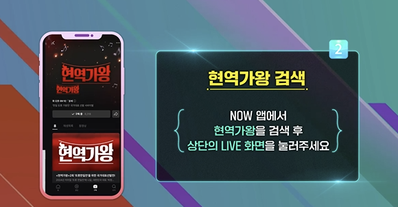 현역가왕 투표하기 방법은 아주 간단합니다. 나우 앱을 다운로드하고 현역가왕을 검색하면 라이브 화면이 나옵니다.