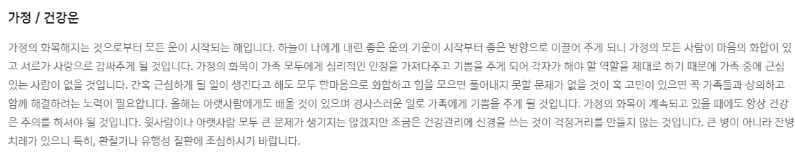 하나하나 토정비결 풀이가 잘 되어 있기 때문에 사주 용어를 모르시는 분들도 쉽게 토정비결 볼 수 있습니다.