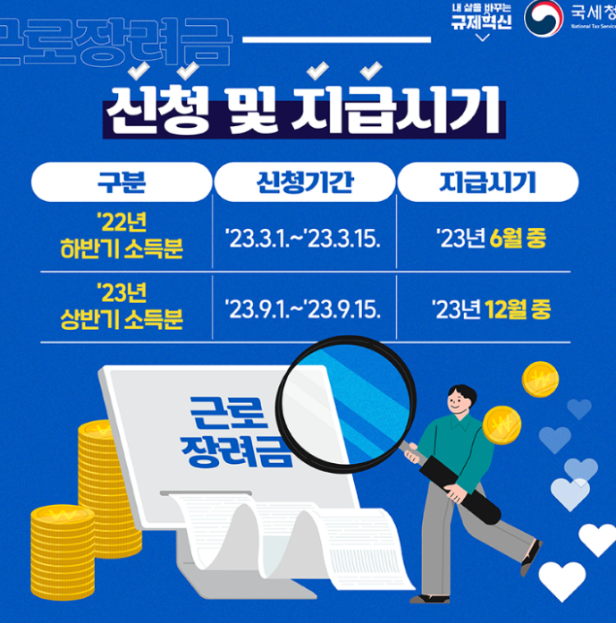 근로장려금 신청기간 및 지급일은 하반기, 정기, 기한 수 신청에 따라서 다릅니다.