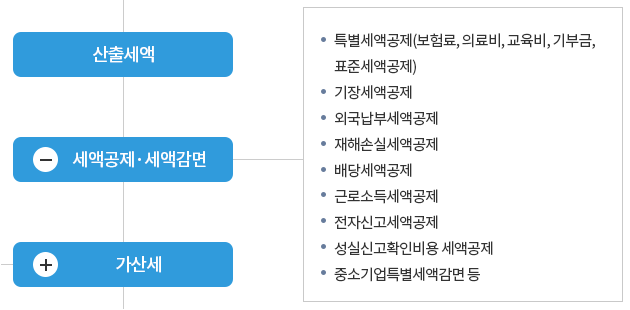 - 산출세액 - 세액공제 및 감면세액 = 결정세액