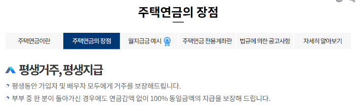 평생 내 집에 살면서 연금을 받을 수 있는 주택연금은 연금을 받는 가입자와 배우자 모두에게 평생 동안 해당 주택의 거주를 보장한다는 장점이 있어 많은 분들이 노후 대비책으로 관심을 갖고 있습니다.