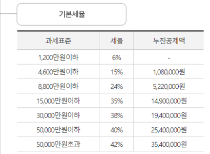 퇴직소득세율은 근로소득세와 동일하게 종합소득세율표를 적용합니다. 하지만 퇴직금은 일시에 지급하는 금액이다 보니 퇴직금이 큰 경우 종합소득과 동일하게 세율을 적용하게 되면 세금 부담이 클 수밖에 없는데요.