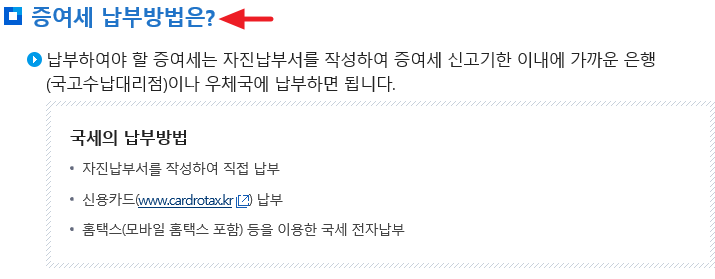 증여세 신고는 홈택스를 통해 증여세 전자신고를 할 수 있으며 세무대리인을 통해서도 신고할 수 있습니다. 납부하여야 할 증여세는 자진납부서를 작성하여 증여세 신고기한 이내에 가까운 은행에 납부하면 됩니다.