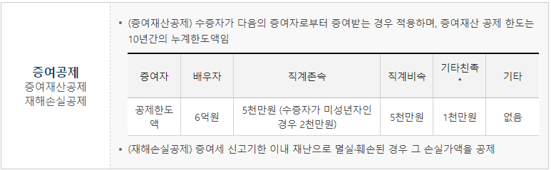 또한 , 증여세 계산을 할 때 가족 간에 증여 시 세금이 공제되는 비과세 금액이 있습니다. 증여는 친족 간에 이루어진 경우라면 증여받은 재산의 가액을 공제받을 수 있습니다.