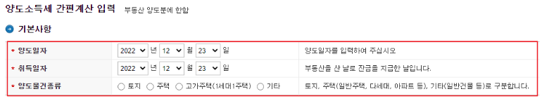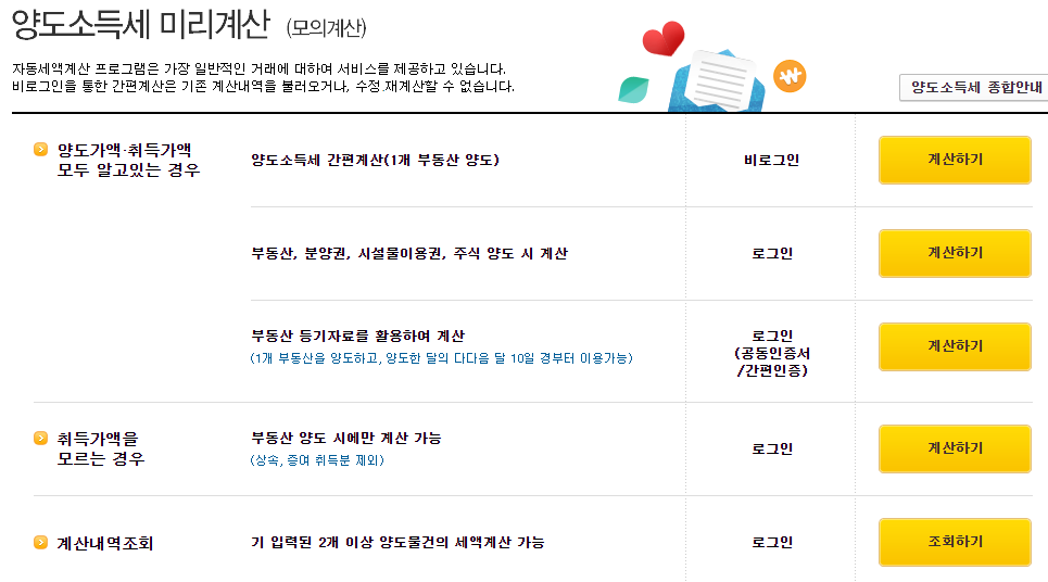 그렇기 때문에 홈택스에서 제공하는 '양도소득세 미리계산' 통해서 양도소득세를 간편하게 계산해 보기 바랍니다. 양도소득세 계산기는 최근 양도소득세 정책까지 반영이 되기 때문에 양도소득세율을 알지 못해도 간단하게 계산해 볼 수 있습니다.