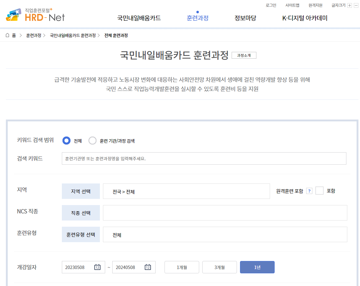 내일배움카드 훈련과정