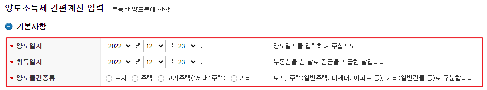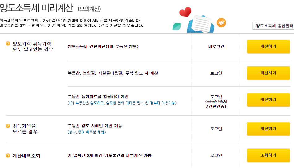 양도세 자동계산 홈페이지