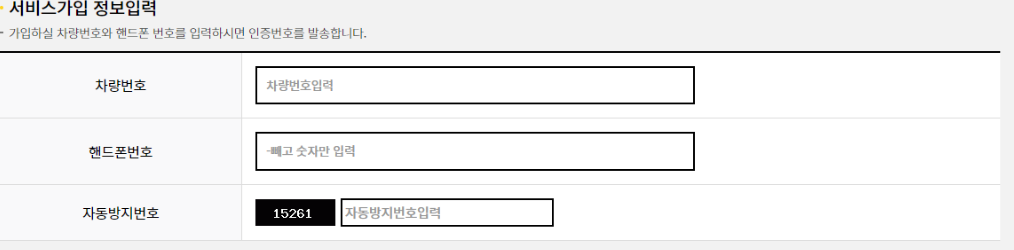 차량번호, 핸드폰 번호, 자동방지번호만 입력하면 신청이 완료됩니다. 차량 소유주 여부는 상관없으며 문자를 받을 전화번호를 입력하며 됩니다. 중복신청도 가능하기 때문에 집, 회사 등 자주 가는 지역 위주로 신청을 해 주시면 되겠습니다.