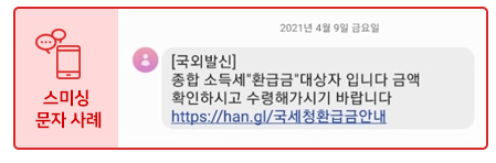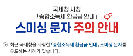 종합소득세 환급금을 받을 수 있다고 세무서에서 개별적으로 문자나 전화 등을 통해서 연락하는 경우는 없습니다. 그렇기 때문에 혹시 대상자라면서 전화가 오거나 문자고 온다면 위험하기 때문에 주의하시기 바랍니다.