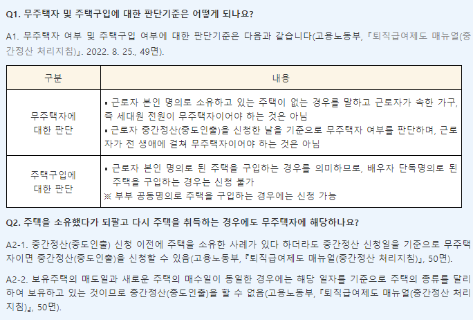 퇴직금 중간정산 요건으로 무주택자의 근로자가 주택을 구입하거나 전세금 또는 보증금을 부담하는 경우 퇴직금 중간정산 요건에 해당이 됩니다. 단, 1회만 허용됩니다.