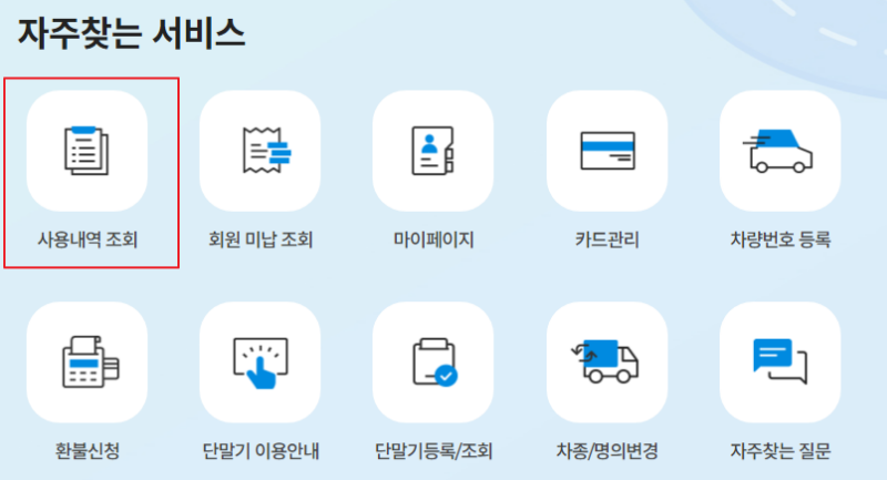 안내에 따라 차량번호 등을 입력하는 과정을 거쳐 원하는 사용내역 조회를 할 수 있습니다.