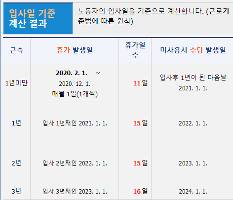 연차휴가일수 계산기 바로가기