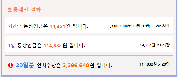 본인이 사용하지 않은 연차휴가일수에 현재 받고 있는 1일 통상임금을 곱해서 계산하면 되는데 번거롭게 통상임금을 계산하지 않고 연차수당 계산기를 이용하면 정말 손쉽게 연차수당 계산이 가능하니 연차수당 계산기를 이용해 보시기 바랍니다.