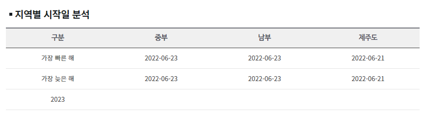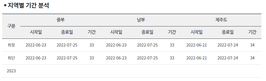 2023년 장마 예상기간