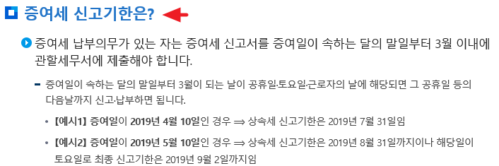 증여세 신고기한은 재산을 받은 날이 속한 달의 말일부터 3개월 이내에 신고해야 합니다. 기한 내 신고를 하지 않으면 20% 가산세를 추가 납부해야 합니다.