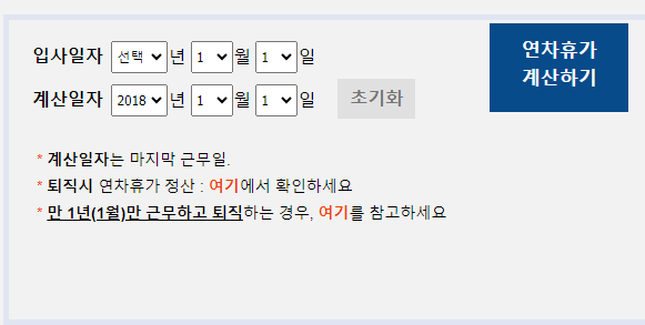 연차수당 계산방법을 알아보기 전에 먼저 연차 휴가일수 계산방법을 정확하게 알고 있어야 합니다. 연차 휴가일수 계산방법을 모르시는 분들은 연차가 몇 개 인지 연자휴가 일수 계산기를 이용해서 계산해 보시기 바랍니다.