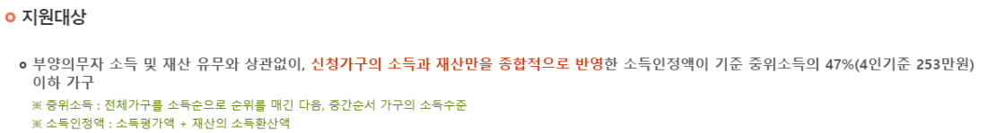 주거급여 신청자격 중 가장 중요한 게 소득인정액이 기준 중위소득 47% 이하가 되어야 합니다. 4인 기준 253만원 이하 입니다. 기준 중위소득 47% 이하 계산하는 방법은 다음과 같습니다.